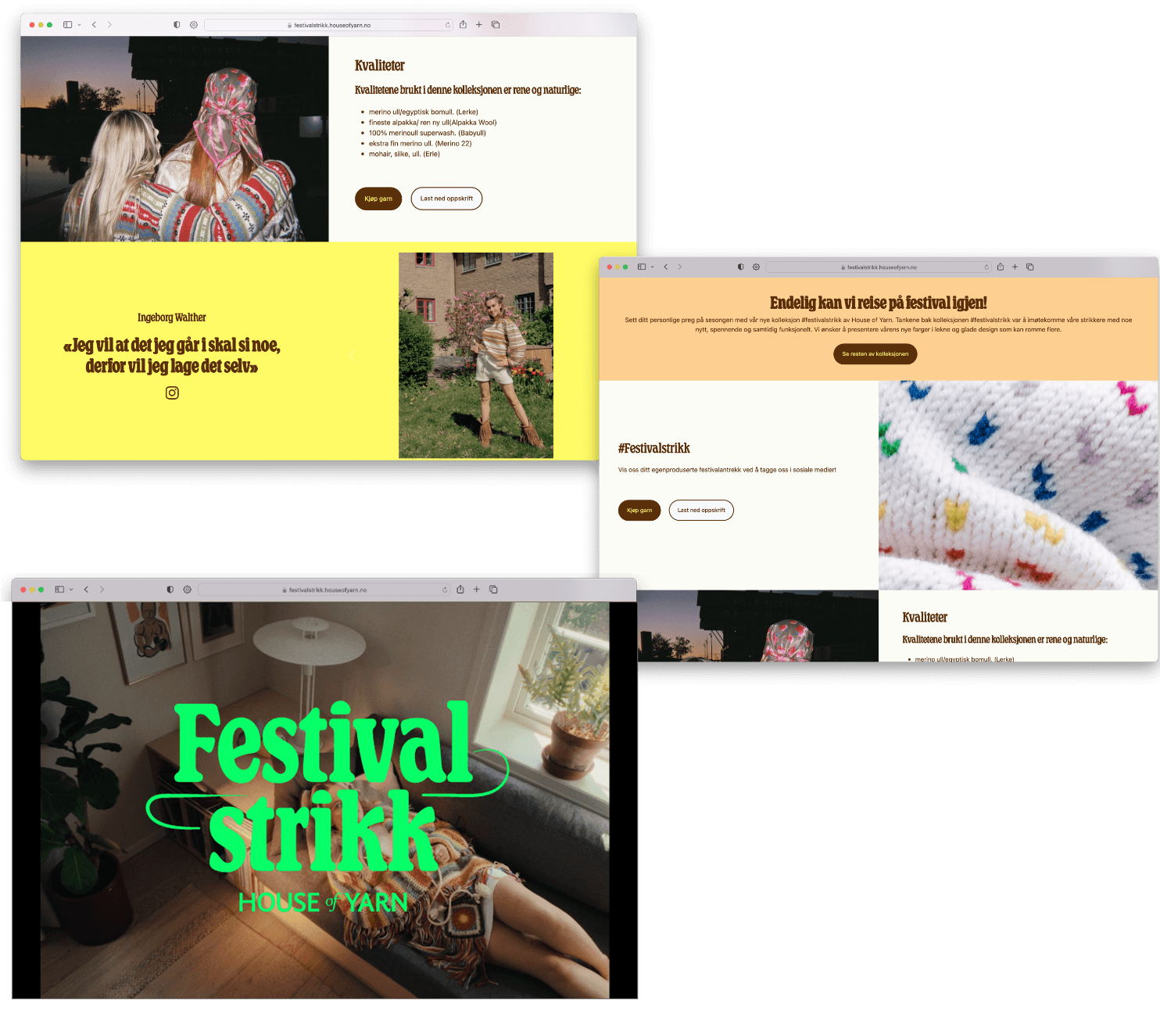 House of Yarn er Nordens ledende leverandør av håndstrikkegarn og tilbehør. Med kolleksjonen Festivalstrikk ønsker de å aktualisere håndstrikkegarn for en yngre målgruppe.